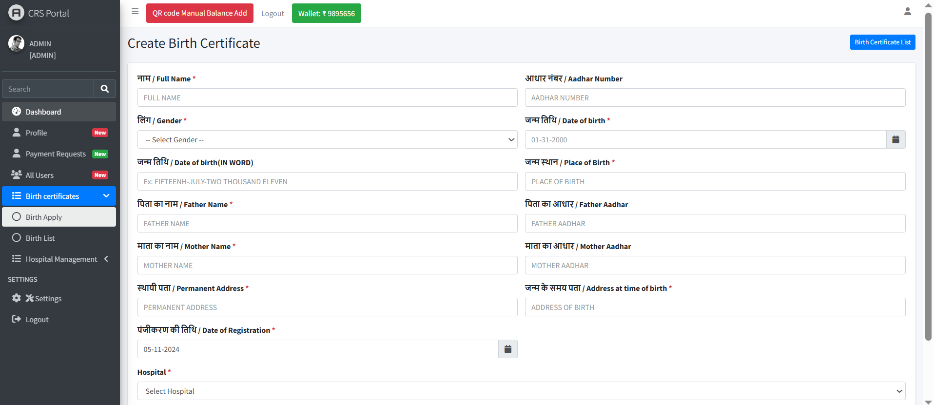 CRS Birth Certificate Generator with Wallet & Payment System